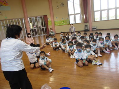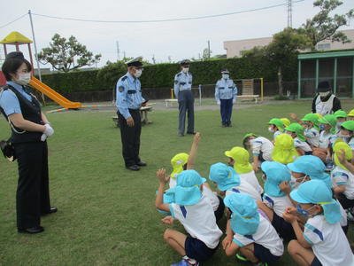 交通安全教室で学んだことを活かして、登降園の時にお子さんと安全な歩き方について、確認しながら歩けるといいですね。