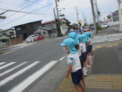 安全部の保護者の皆様にも御協力いただき見守っていただきながら、安全な歩き方を意識して実地訓練ができました。