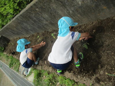 ポットから大切に抜き出し、土にやさしく植えていました。