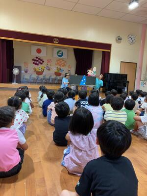 七夕の由来をペープサートで紹介しました。「織り姫と彦星」の話を、楽しそうに聞いていました。