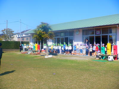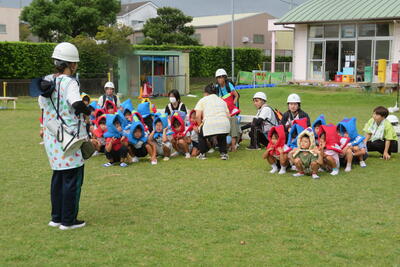 子どもたちは、放送や担任の指示をよく聞き、慌てずに園庭に避難しました。