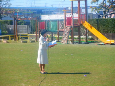 始業式では、元気よく挨拶を交わし、園長の話もしっかりと聞いていました。
